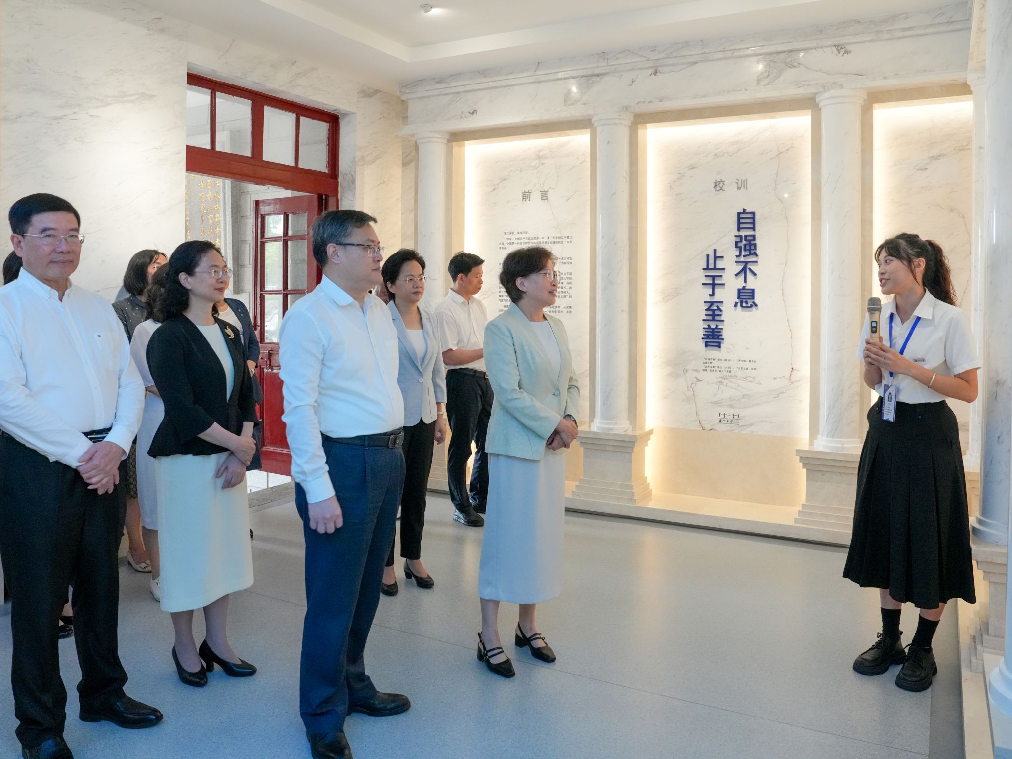 之后,黄晓薇一行参观了厦门大学校史馆及人类博物馆。在校史馆,大家共同回顾了厦大百余年的发展历程,感受学校延续自立自强精神、创新奋力前行的动人篇章。在人类博物馆,大家重温了人类的起源与发展历程,感受海峡两岸共同的文化印记。