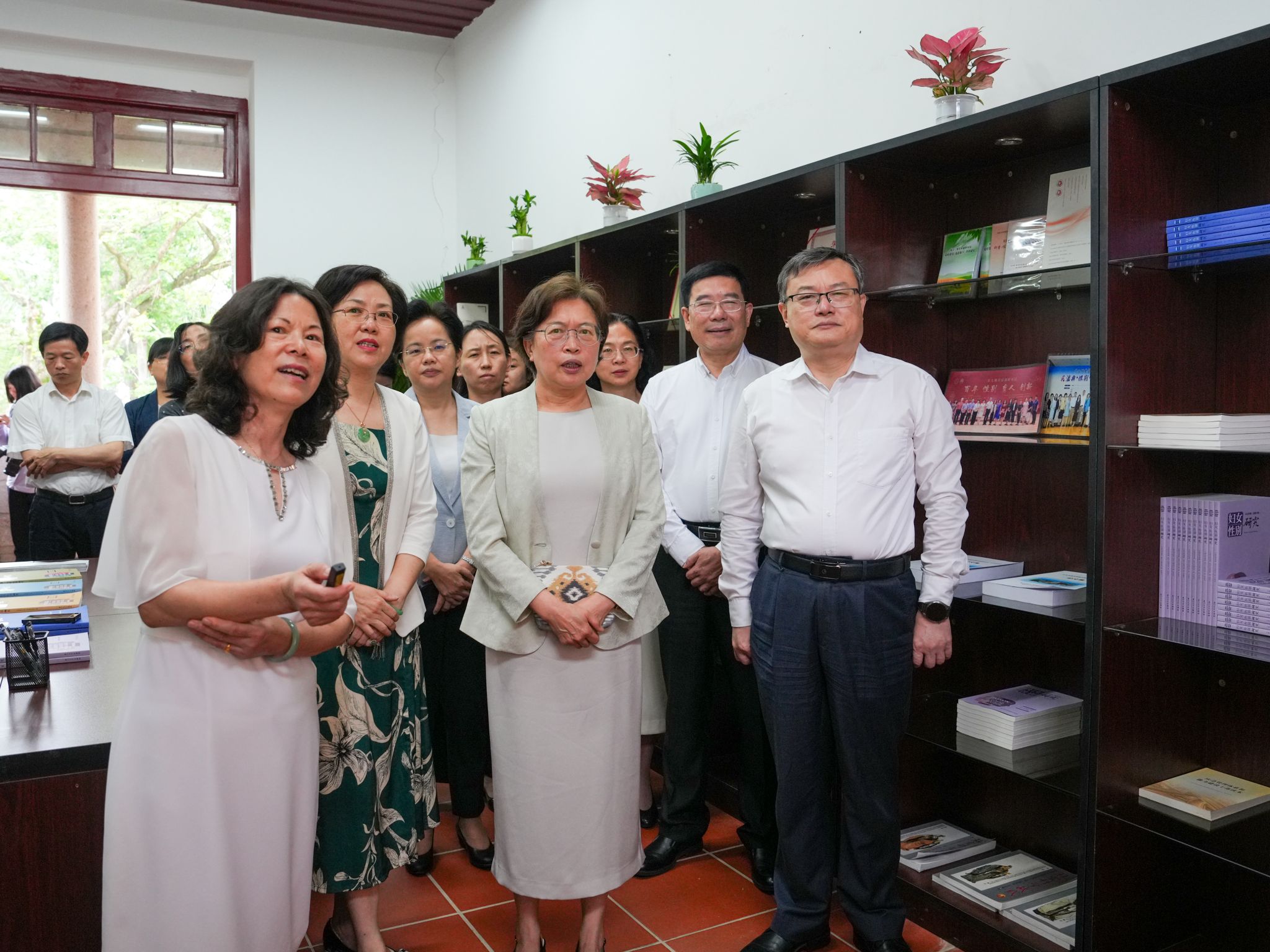 黄晓薇充分肯定了妇女基地的建设成果,同时表示希望广大女教师继续积极投身妇女/性别工作的相关研究,促进男女平等和妇女的全面发展。张荣向黄晓薇赠书《厦大巾帼好故事》,妇女基地向客人赠送了自办的学术集刊《妇女/性别研究》。