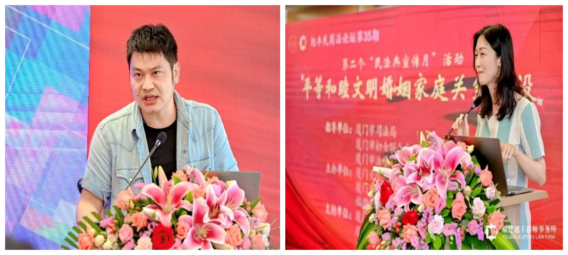 厦门大学法学院副教授、《厦大法律评论》常务副主编魏磊杰博士报告分享了《民行交叉视野下父母离婚后的子女姓名变更问题再思考》。他以“夫妻在家庭中地位平等原则”及典型案例引出主题并结合相关复函、批复对典型案例进行深度解析。通过常态案例总结法院的倾向性立场,同时通过非常态案例进行既有规定之反思及现实作法之改进。在福建旭丰律师事务所李丽芳律师的主持下,魏磊杰与福建旭丰律师事务所王鹭杰律师就父母离婚后的子女姓名变更问题展开了不同角度的探讨。