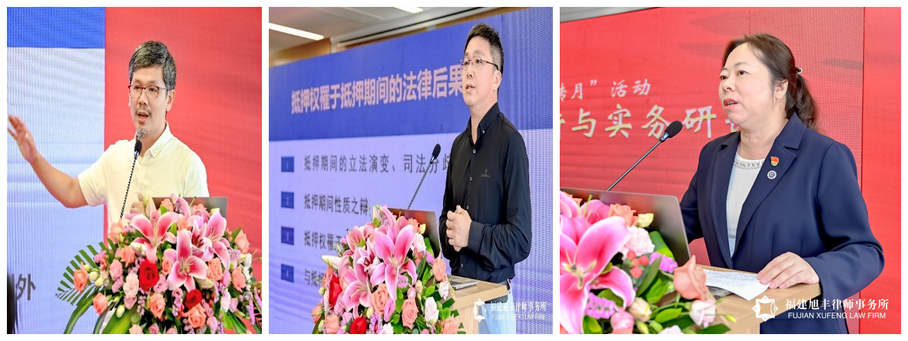 在上午的研讨会上,首先,厦门大学法学院教授、中国法学会民法学研究会常务理事、中国外国法制史研究会副会长徐国栋报告了《诚信原则立法与理论最新发展》。徐国栋教授以2016年《日本民法典修正案》对诚信原则的规定为引,系统阐述了诚信原则的两个子原则——禁反言原则、净手原则的立法与理论发展背景,结合经典案例详细解析了两个子原则的适用。其次,厦门大学法学院副院长、教授、中国法学会民法学研究会理事郑晓剑以《后民法典时代的解释论与立法论——以意定监护制度为中心》为主题,围绕意定监护制度的构建,阐析了现行意定监护制度在制度理念、监督机制、实体及程序规则上的不足,在梳理立法与学理的基础上,他提出了未来可能的完善路径。第三位报告人是厦门大学法学院教授、中国法学会民法学研究会理事郑永宽,他演讲的题目是《抵押权罹于抵押期间的法律后果》。他从抵押期间的立法演变、司法分歧及论争着手,深入辨析了抵押期间是除斥期间还是诉讼时效期间问题,深入阐析了“抵押权罹于抵押期间将丧失对抗第三人效力”的观点。随后,厦门大学法学院助理教授、厦门大学法学博士齐云老师进行《我国多数人之债的类型推定规则探究》的主题分享。齐老师从“共同借款”案入手,提出了多数人之债类型判断问题,解读了多数人之债的类型推定规则,引出相关的“连带之债不得推定”、按份推定与连带推定的立法例、连带债务成立标准、立法上基础推定规则与特别例外规定等四大问题。论坛开幕式及上午环节由福建旭丰律师事务所主任、厦门市律师协会副会长王桂英主持。