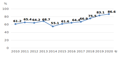 图8 2010—2020年全国农村集中式供水受益人口比重