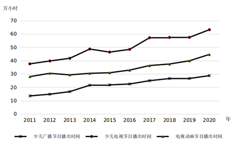 图8 2011—2020年少儿广播节目、少儿电视节目、电视动画节目播出时间