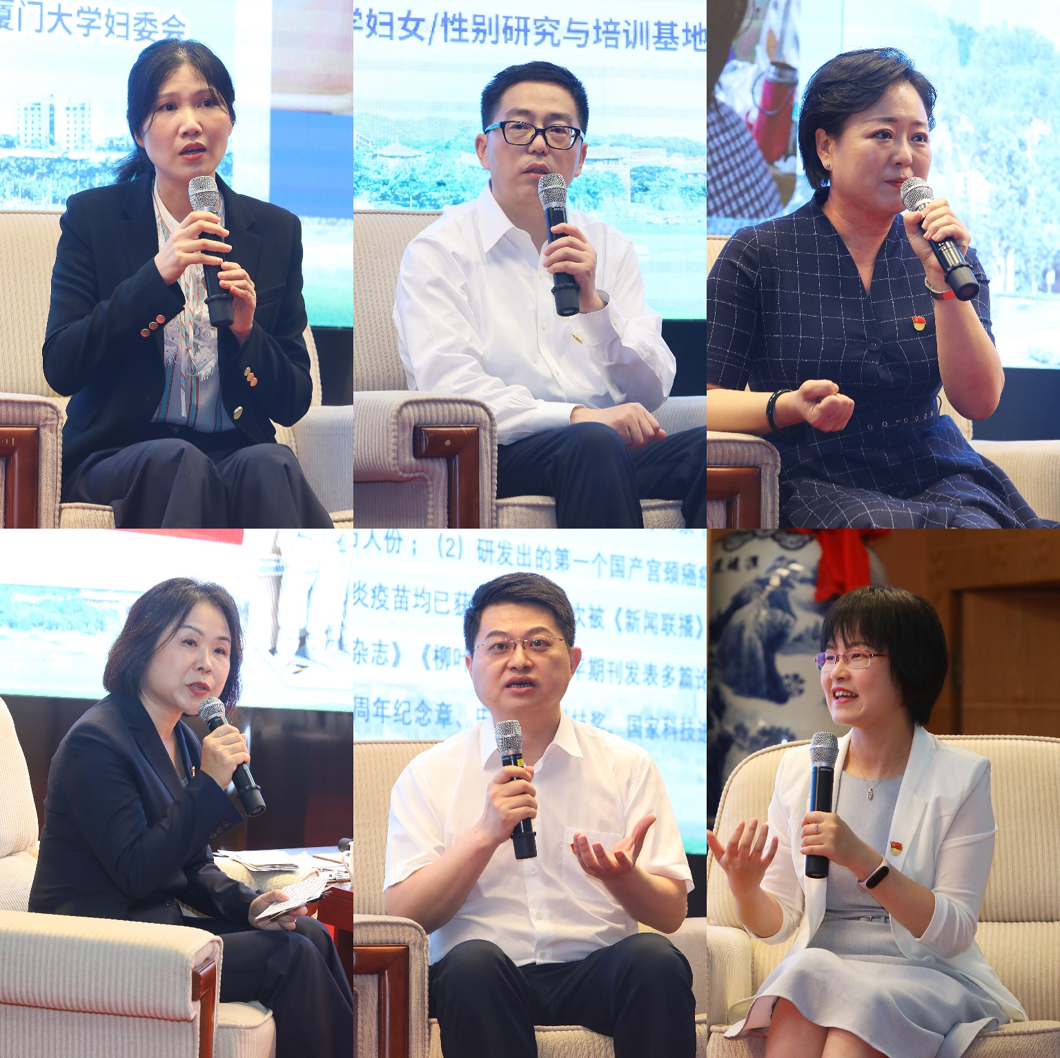 因疫情防控要求,本次对话设置了主会场和分会场,并同步线上分享。学校办公室、组织部、党建办、宣传部、教师工作部、学生处、社科处、科技处、教务处、研究生院、医管办、校工会、校团委、校妇委会、妇女/性别研究与培训基地等单位领导出席主会场活动,许多学院设置了分会场远程参与活动,有近1000师生参与线上直播和互动。精彩的分享现场,师生们一次又一次地响起热烈掌声。在对话过程中,同学们通过线上线下向嘉宾们提出了许多问题,嘉宾们择其要当场给予了解答。