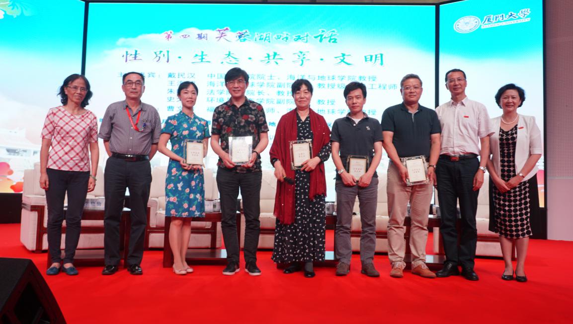 紧接着,在主持人福建省教学名师、海洋与地球学院曹文清教授的逐一介绍下,受邀嘉宾中科院院士、海洋与地球学院戴民汉教授,海洋与地球学院副院长、教授级高级工程师王海黎,环境与生态学院副院长史大林教授,法学院副院长朱晓勤教授一一上台与观众见面。