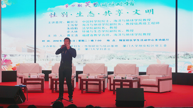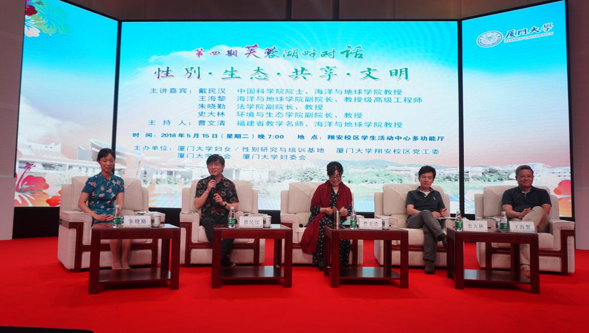 5月15日晚,“第四期芙蓉湖畔对话——性别•生态•共享•文明”在翔安校区学生活动中心多功能厅如约举行。本期对话由厦门大学妇女/性别研究与培训基地、厦门大学翔安校区党工委、厦门大学工会、厦门大学妇女委员会共同主办。校党委副书记、纪委书记、工会主席赖虹凯,中科院院士、我校副校长韩家淮,副校长、妇女/性别研究与培训基地主任詹心丽,校关工委主任陈力文等领导出席了本次活动。
