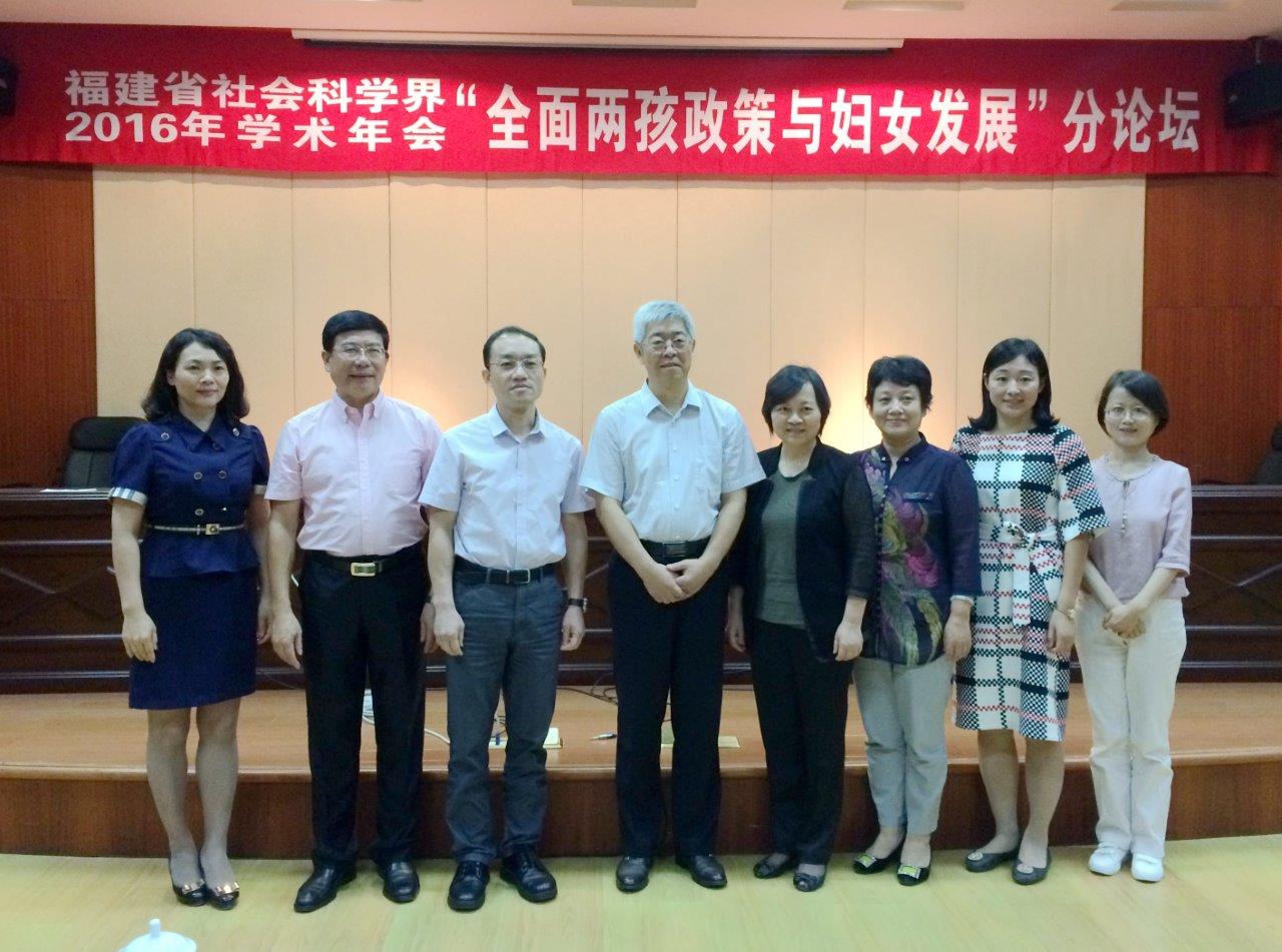 10月29日,福建省社会科学界2016年学术年会、“全面两孩政策与妇女发展”分论坛暨福建妇女理论研究会2016年年会在福州的省妇女干部学校举行。省妇联党委组书记、主席吴秀芹,省社科联学会部主任李道兴出席会议并发表讲话。省妇女理论研究会会长、福建江夏学院教授叶文振,中国人口学会副会长、北京大学人口所教授乔晓春,以及来自福建省各个高校及妇联等80余位妇女工作者出席会议。