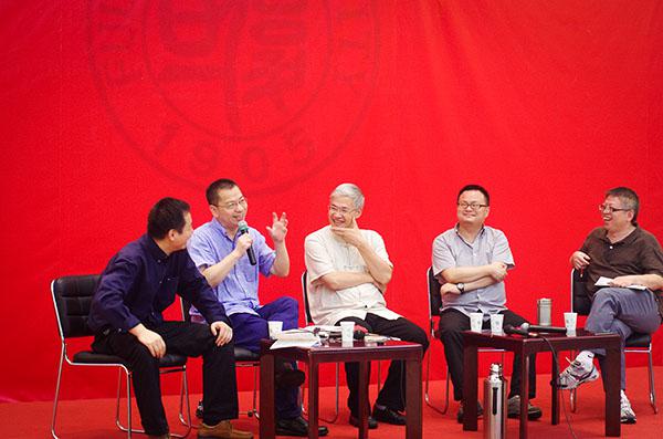 2014年11月,儒家学者郭晓东、干春松、秋风、丁耘、白彤东在复旦大学就“儒学与政治”展开谈话 哲学学院于明志 图。