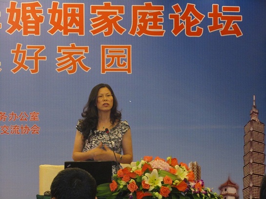 厦门大学妇女/性别研究与培训基地副主任、厦门大学法学院教授、博士生导师蒋月受主办方邀请出席海峡两岸婚姻家庭论坛,发表题为《跨海峡两岸婚姻家庭的观察与思考》的生动精彩的主题报告。蒋月教授指出,从20世纪70年代末,大陆实行改革开放政策及对台政策有了重要发展,台湾方面于1987年开放两岸探亲,两岸通婚随之而生。截止到今年初,两岸居民通婚已超过30万对。目前,跨两岸婚姻家庭呈现四种情形:一是婚后生活和事业重心均在台湾;二是婚后生活和事业重心均在大陆;三是婚后行走于两岸之间的;四是生活和事业的重心在大陆的台湾夫妻。其中以大陆新娘与台湾先生的组合最为多数。尽管这个群体都是漂洋跨海来爱你,但是,由于两岸政治、法律及社会等各方面存在的差异,跨两岸的婚姻家庭遇到了特有困惑和问题,例如,身份承认、工作权、生活习惯适应、观念与意识差异、孤单无助、子女教育等。随着开放大陆居民赴台个人游、越来越多大陆学生赴台求学等更多面向基层交流的推进,跨两岸的爱情故事将越来越多地发生。蒋月认为,跨两岸婚姻家庭的当事人要尽快融入新家庭、适应新环境、开启新生活,有赖于相应的公共政策支持、本地人友善接纳,当事人积极作为,三者缺一不可。她建议,加强对跨两岸婚姻家庭的宣传与引导,平等维护不同群体的合法权益,切实帮助解决实际困难和问题,采取措施帮助当事人及其家庭融入当地社会;当事人自身要积极面对:相互尊重,平等协商,沟通交流,多作正向思考,多多理解、多多谅解,多多珍惜,多多智慧,多多学习,多多帮助。相信跨两岸婚姻家庭将获得平稳健康发展。