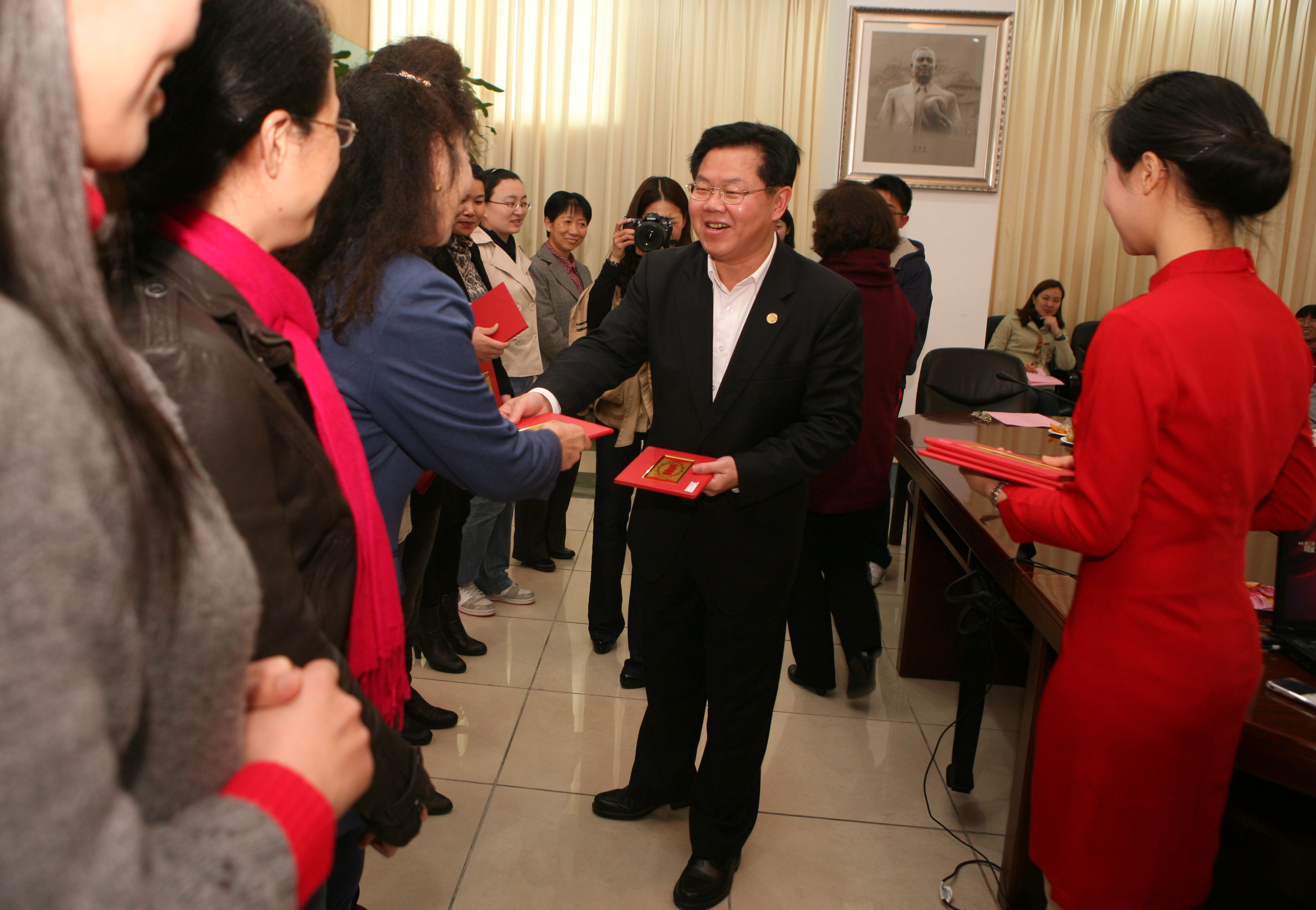 朱崇实在讲话中说,多年来,我校广大妇女同胞以强烈的主人翁意识和“巾帼不让须眉”的豪迈气概,自强自立,奋发有为,积极投身学校各项事业,发挥着独特的“半边天”的优势和作用,为学校科学发展与和谐校园建设做出了巨大贡献。当前,我们要把学习贯彻《高等学校教师职业道德规范》和我校师德师风建设大会精神相结合,希望广大女教师爱国爱校守法,加强自身修养,关心爱护学生,遵守学术规范,勇担社会使命、肩负起“立德树人、教书育人”的光荣职责。