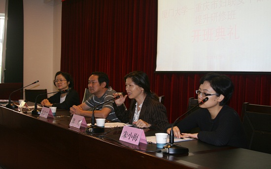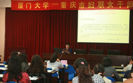2011年11月28日,由厦门大学妇女/性别研究与培训基地与重庆市妇联联合举办的“厦门大学——重庆市妇联妇女干部能力提升研修班”在厦大公共事务学院开班,来自重庆市妇联届的28位女干部汇聚厦门大学,就妇联发挥自身优势,成为当代社会开展妇女工作的坚强阵地,妇女社会地位等问题展开讨论、学习。从而增进相互之间的交流,为以后更好地展开妇女工作奠定了实践与理论基础。